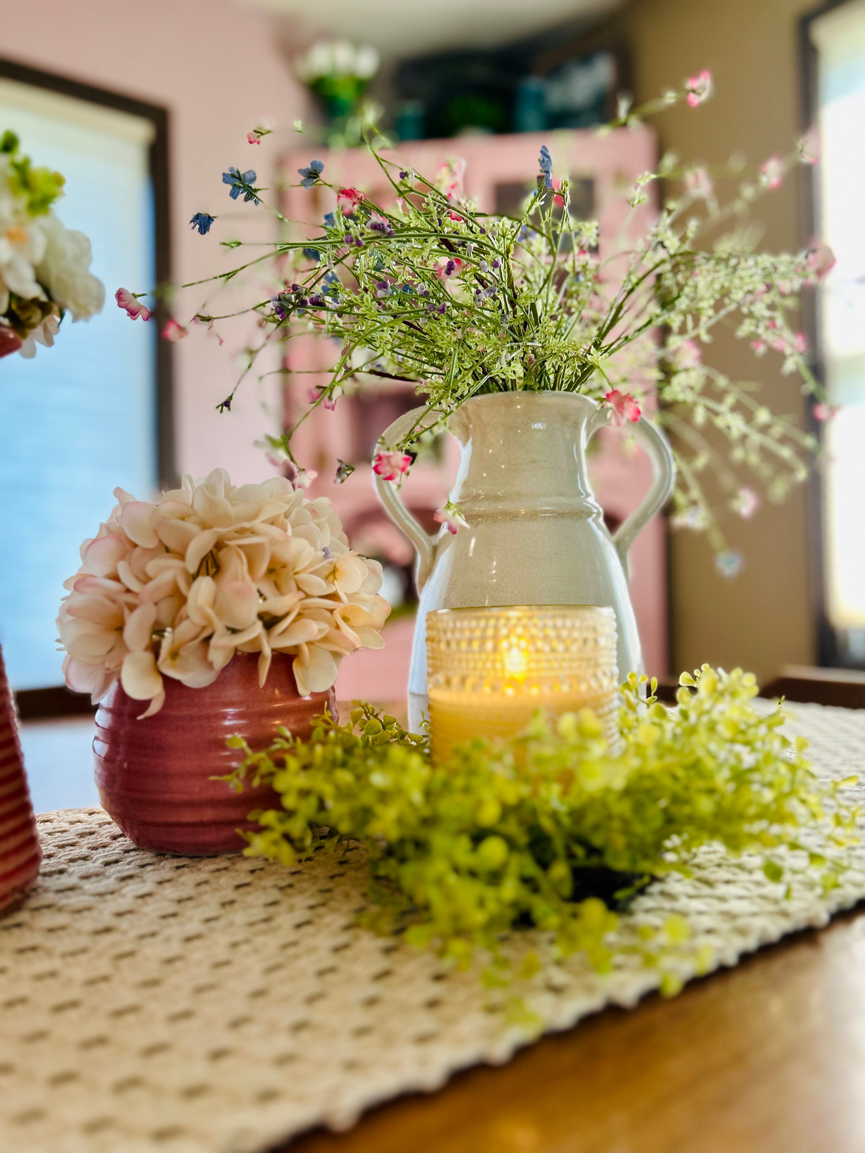 Pink & White Silver Dollar with Twig | Wreath or Candle Ring
