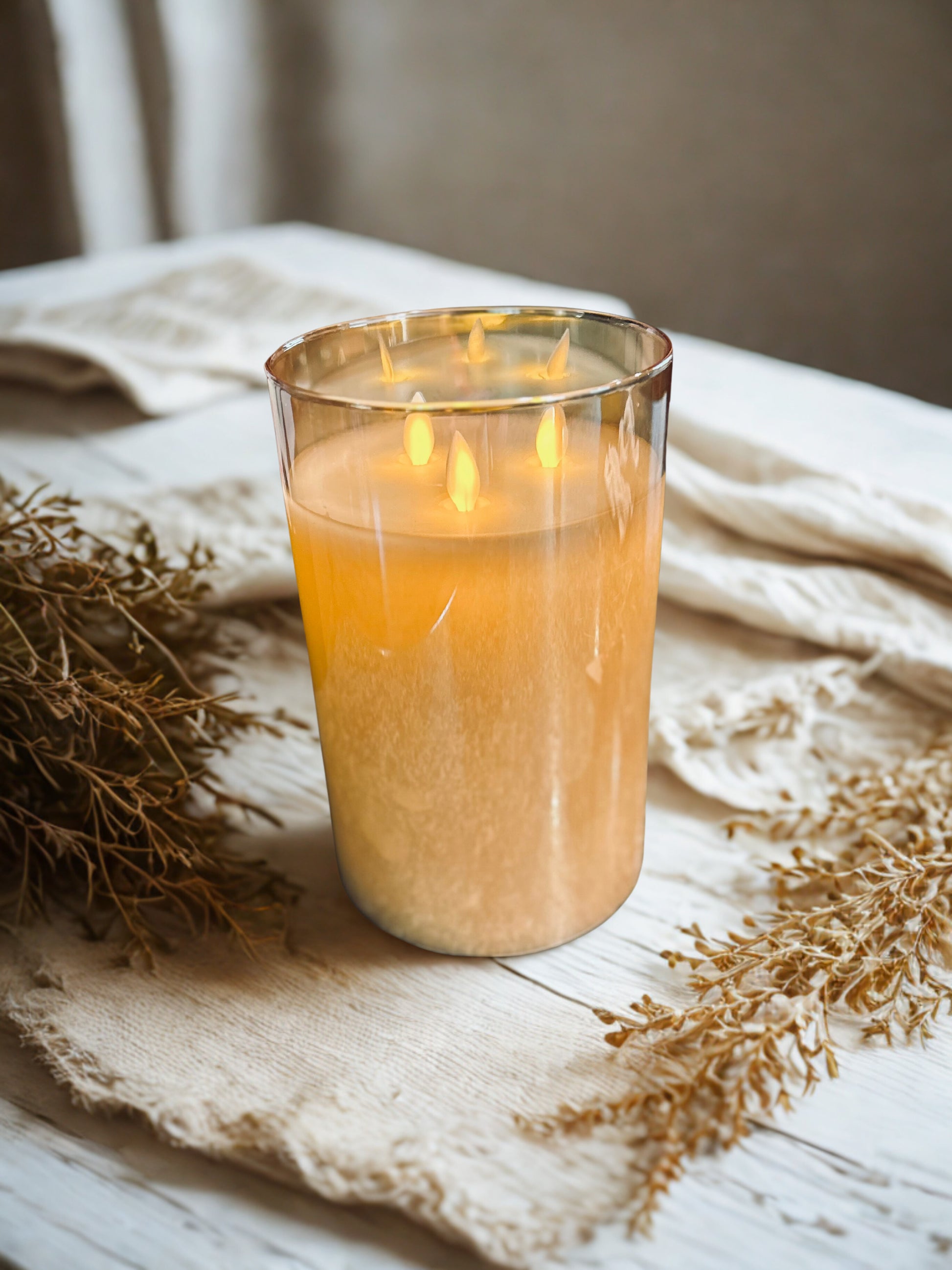 Amber Glass Candle | 3 Wick LED Moving Flame 5x8