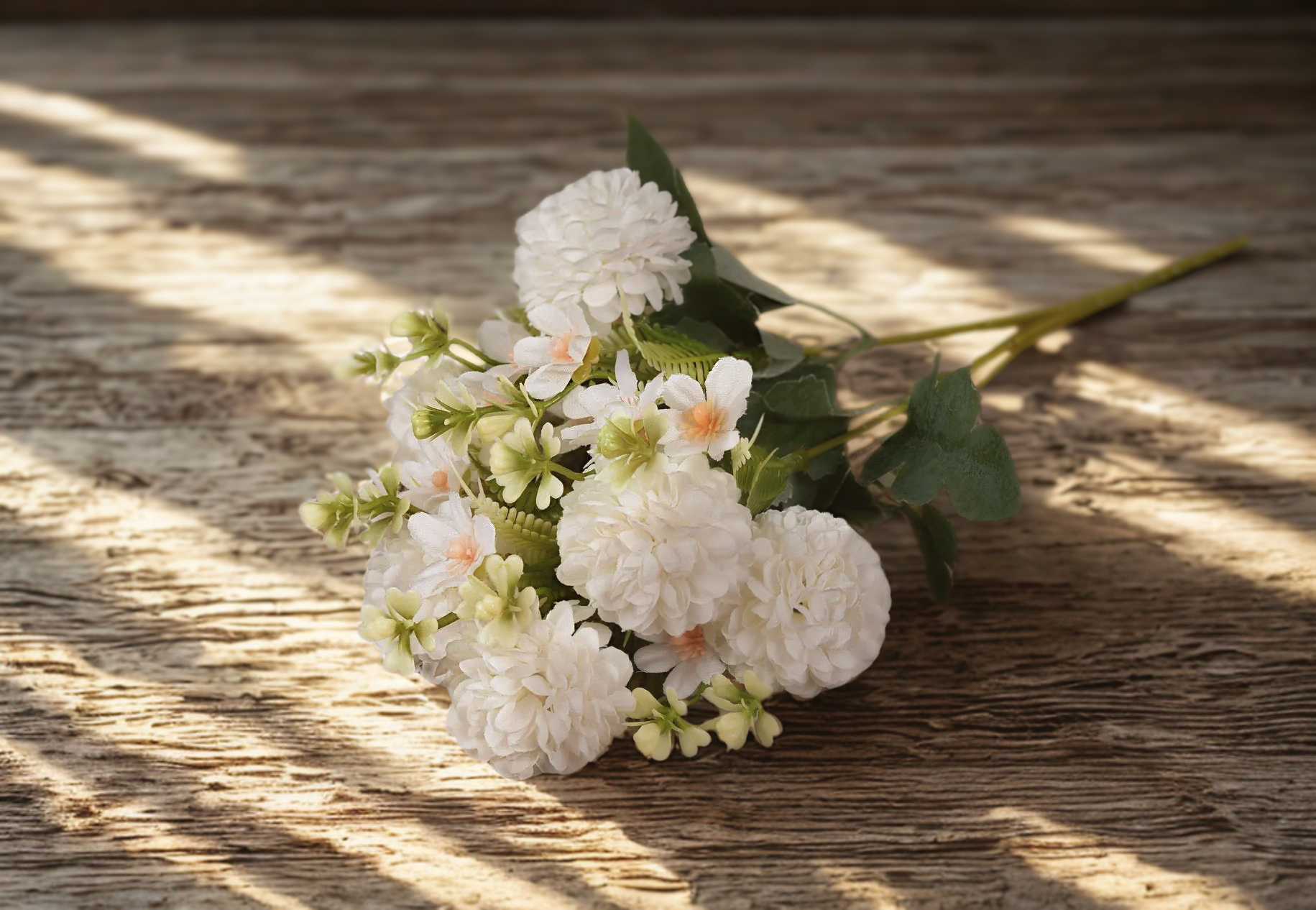 Add a touch of elegance to your home decor with our White Chrysanthemum Pick. This 14-inch pick features delicate white chrysanthemum blooms, perfect for adding a pop of brightness to any arrangement or vase. Bring a touch of nature into your space with this beautiful and versatile pick.